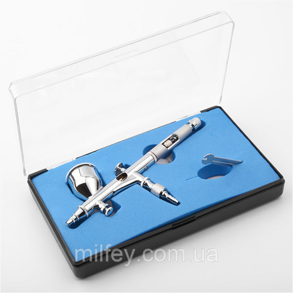 Аерограф широкого спектра застосування з верхнім подаванням фарби. Найпопулярніша модель із представленої лінійки. Оптимально підходить для тонких робіт у моделі та художньій діяльності, для нігтьових дизайнів. Оптимально працює з мінікомпресорами з автостопом і продуктивністю від 10 до 25 літрів/хвилину